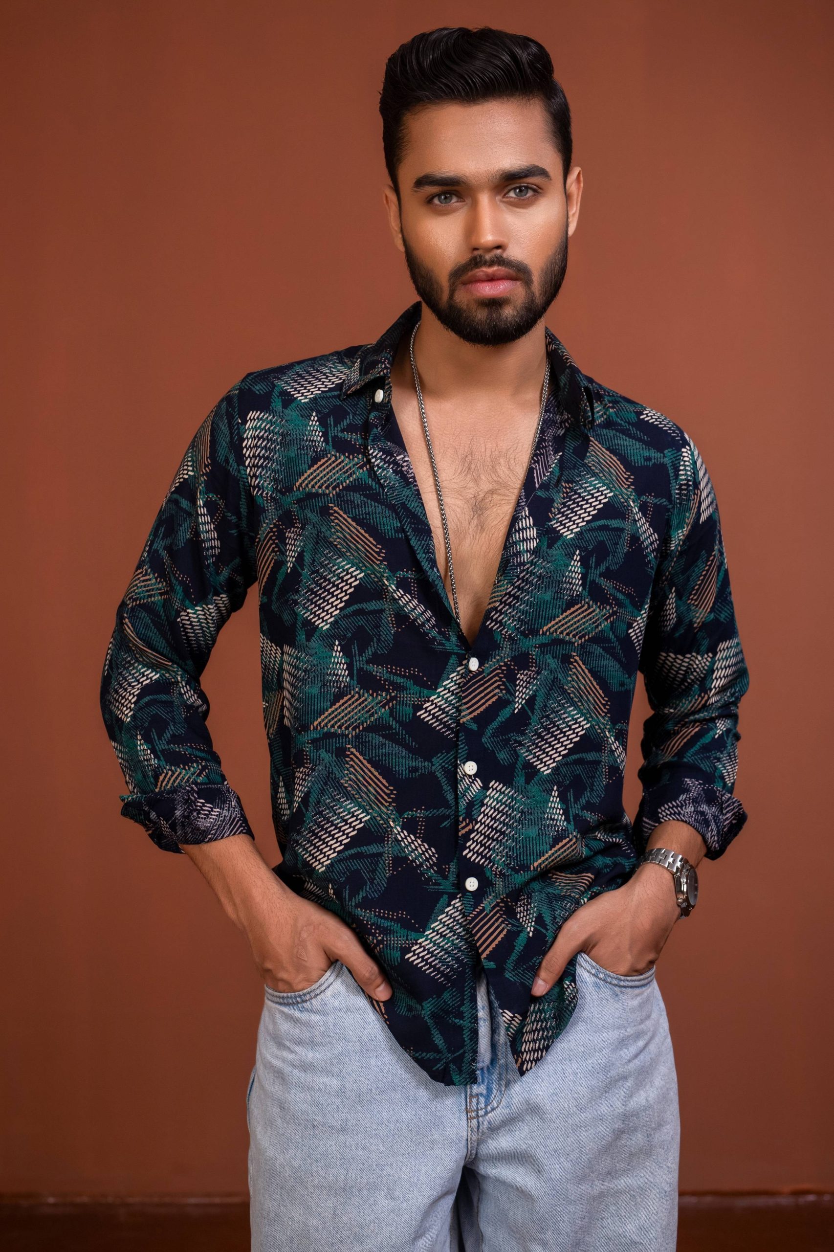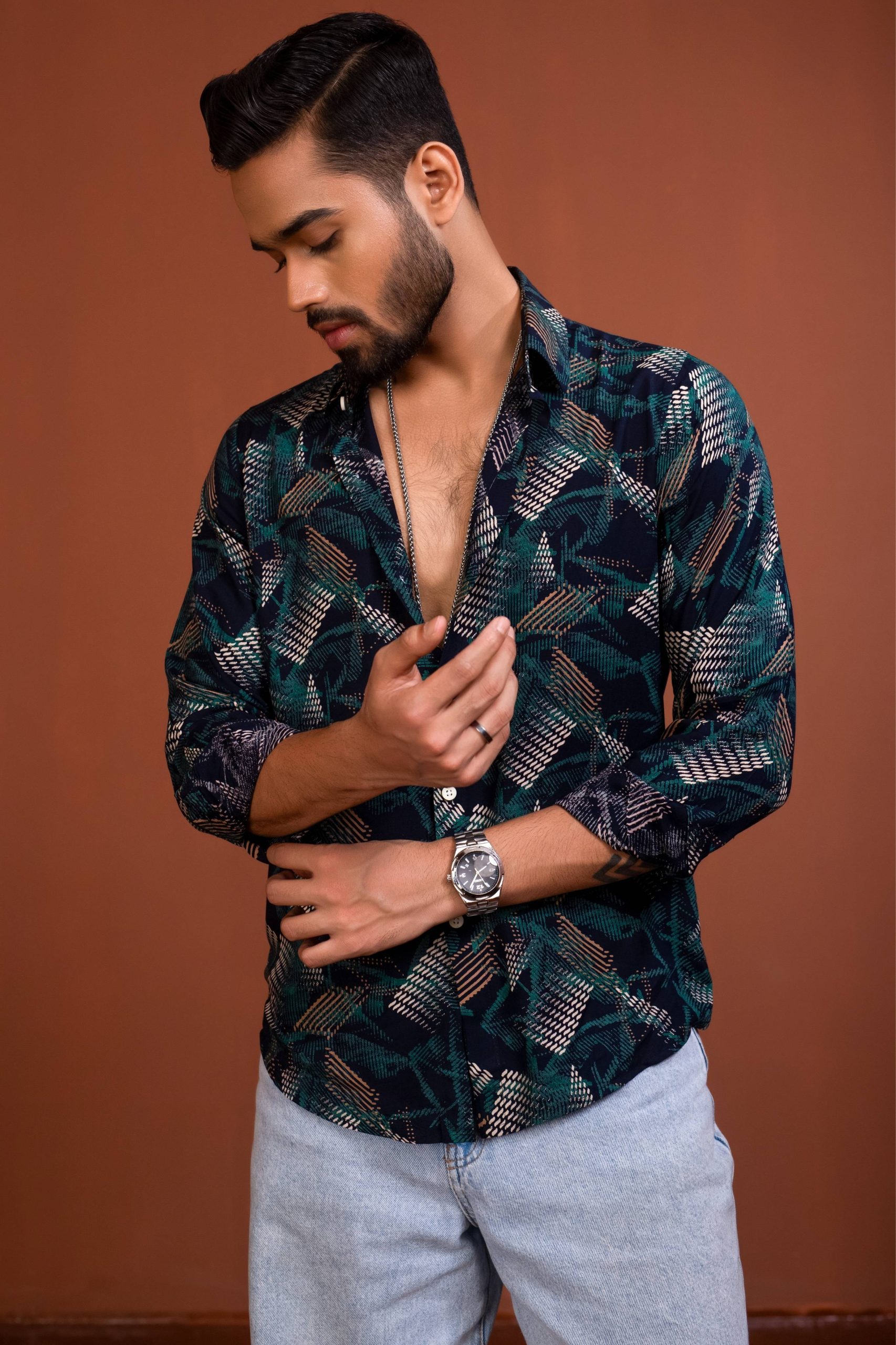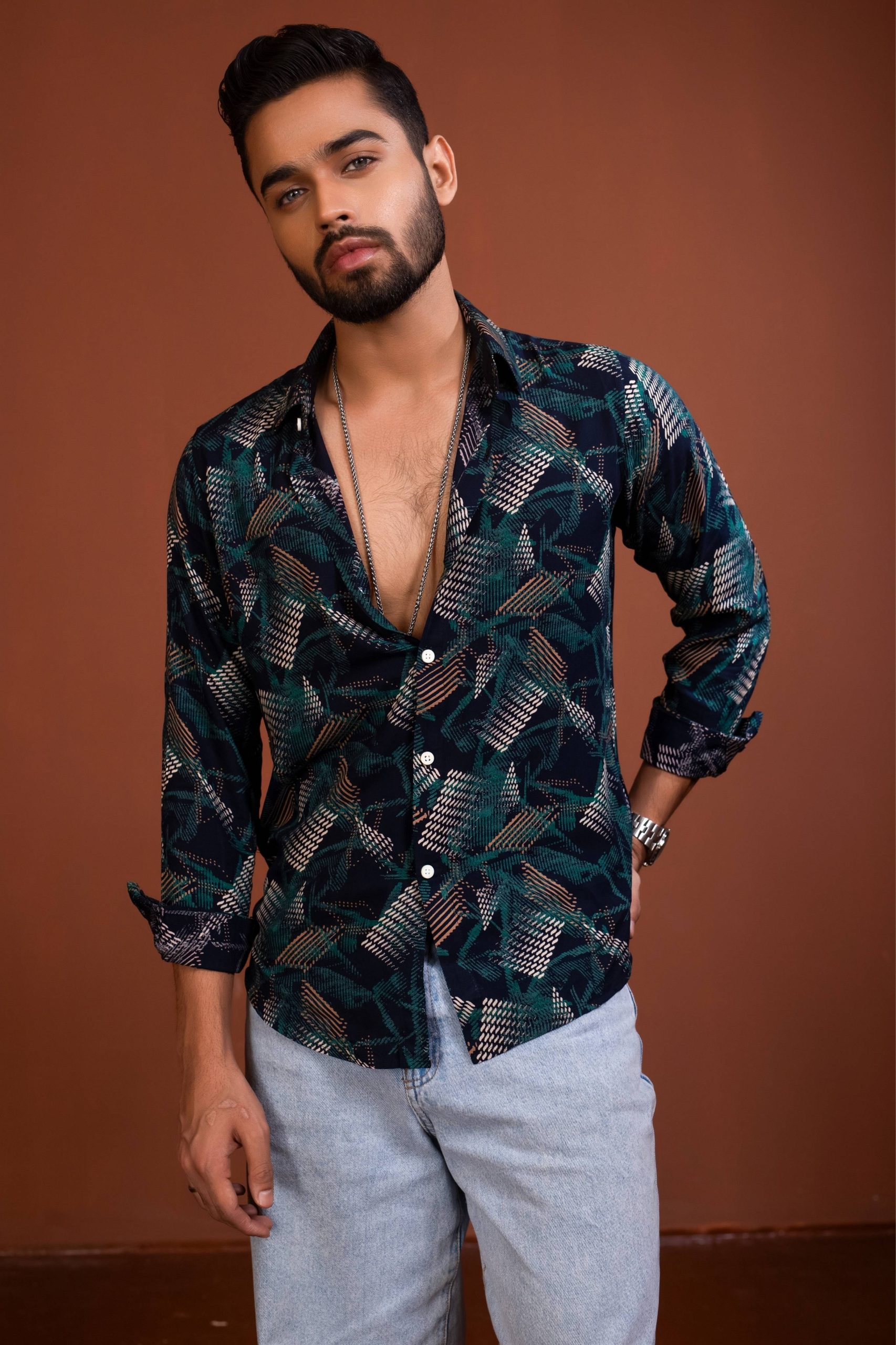 Turn heads wherever you go with this statement Printed Party Shirt for Men, designed for bold style and confident vibes. Featuring an eye-catching all-over print with rich tones, this shirt is perfect for parties, night outs, and special occasions.
